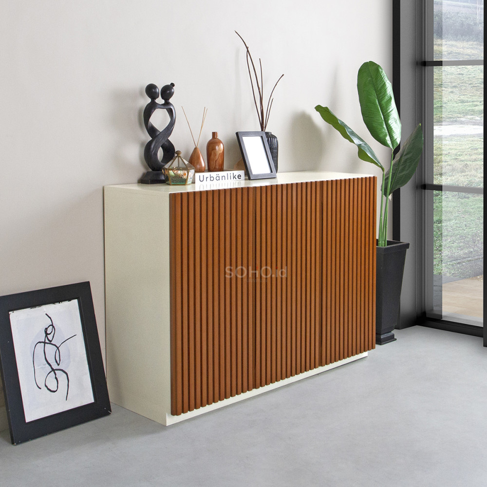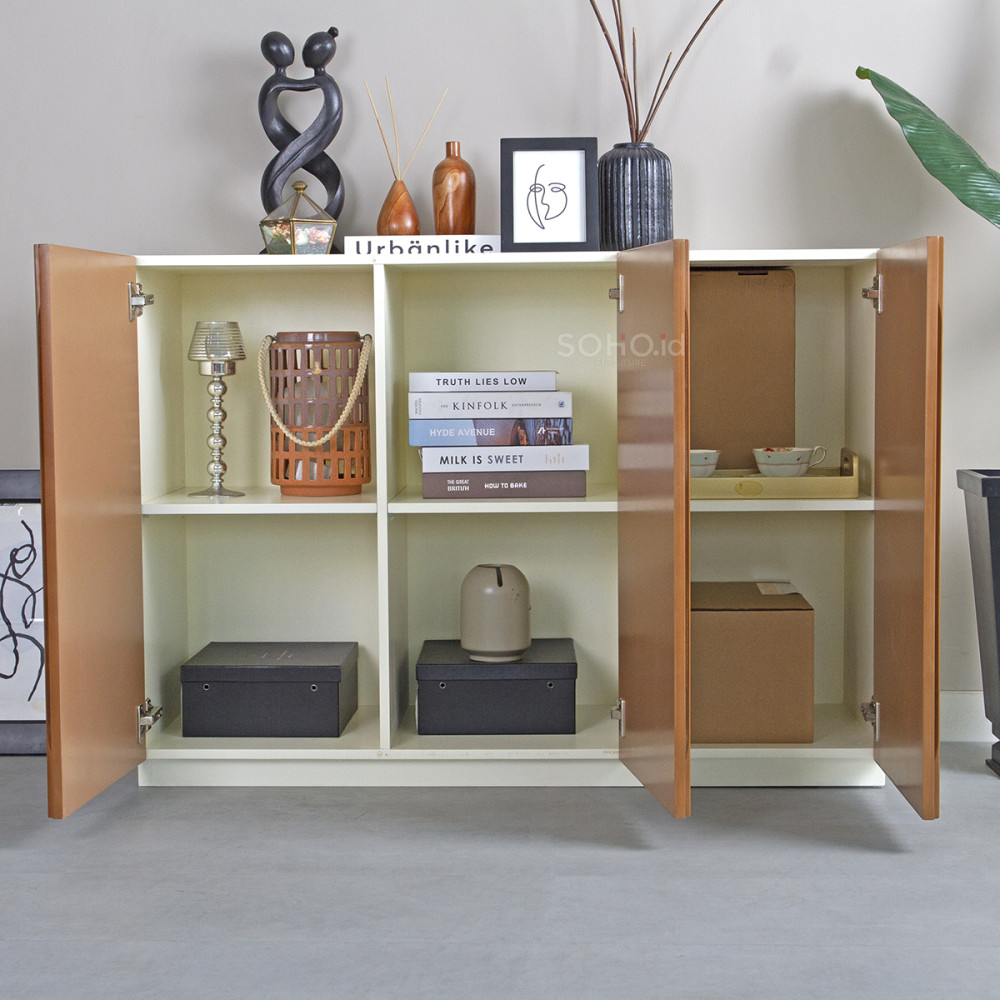 Hiro Kabinet 3 Pintu, Kabinet dengan gaya minimalis untuk memberikan kesan modern. Dilengkapi dengan tiga pintu besar untuk penyimpanan.